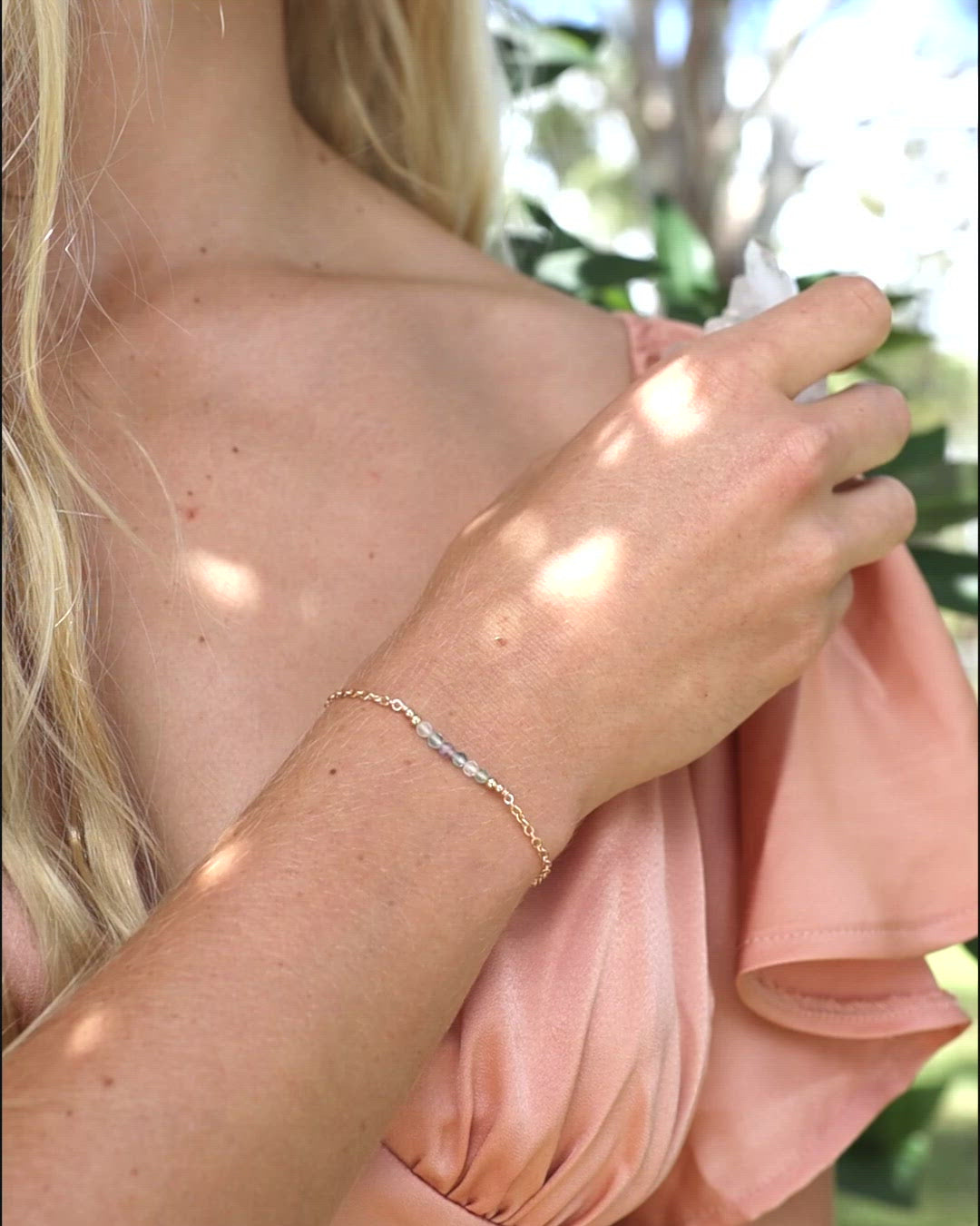 Sparkling Rainbow Fluorite Gemstone Faceted Bead Bar Bracelet