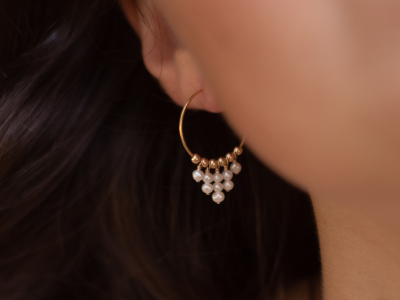 White Freshwater Pearl Statement Hoop Earrings