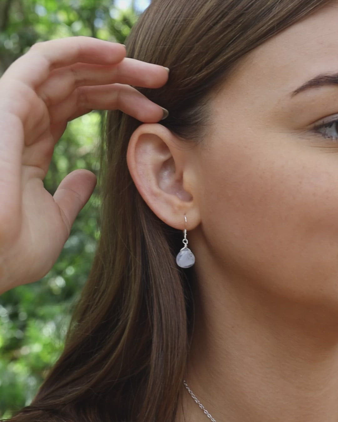 Blue Lace Agate Gemstone Teardrop Dangle Earrings