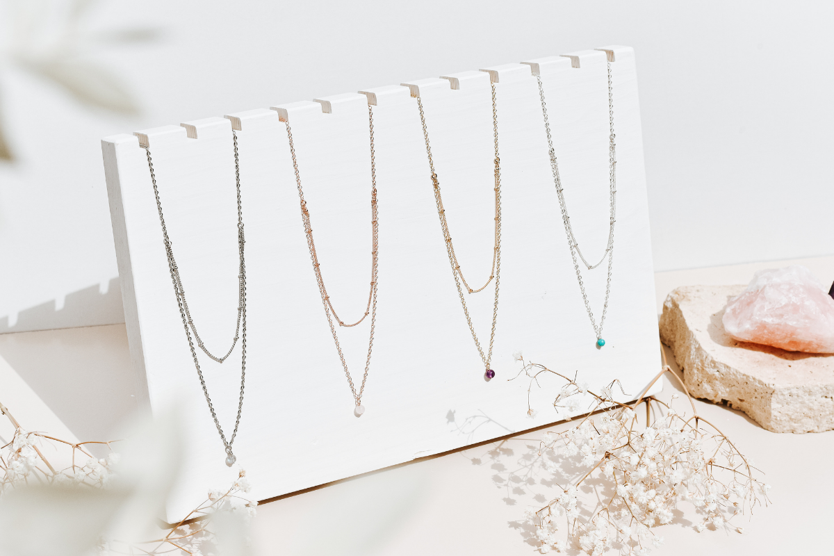 Nothing quite says bohemian style like layering - so with our new layered pink tourmaline choker necklace, you'll be oozing, carefree vibes wherever you wear it! This handmade necklace features a pretty beaded chain layer and a longer plain chain layer with a small genuine crystal drop and works wonderfully whether worn with jeans and a white shirt or flowing maxi dresses.