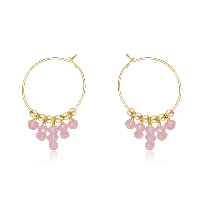 Pink Rose Quartz Gemstone Bead Drop Hoop Earrings