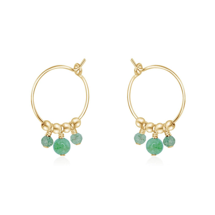 Green Aventurine Gemstone Bead Drop Hoop Earrings