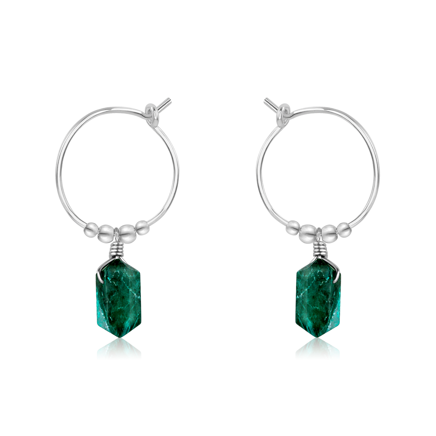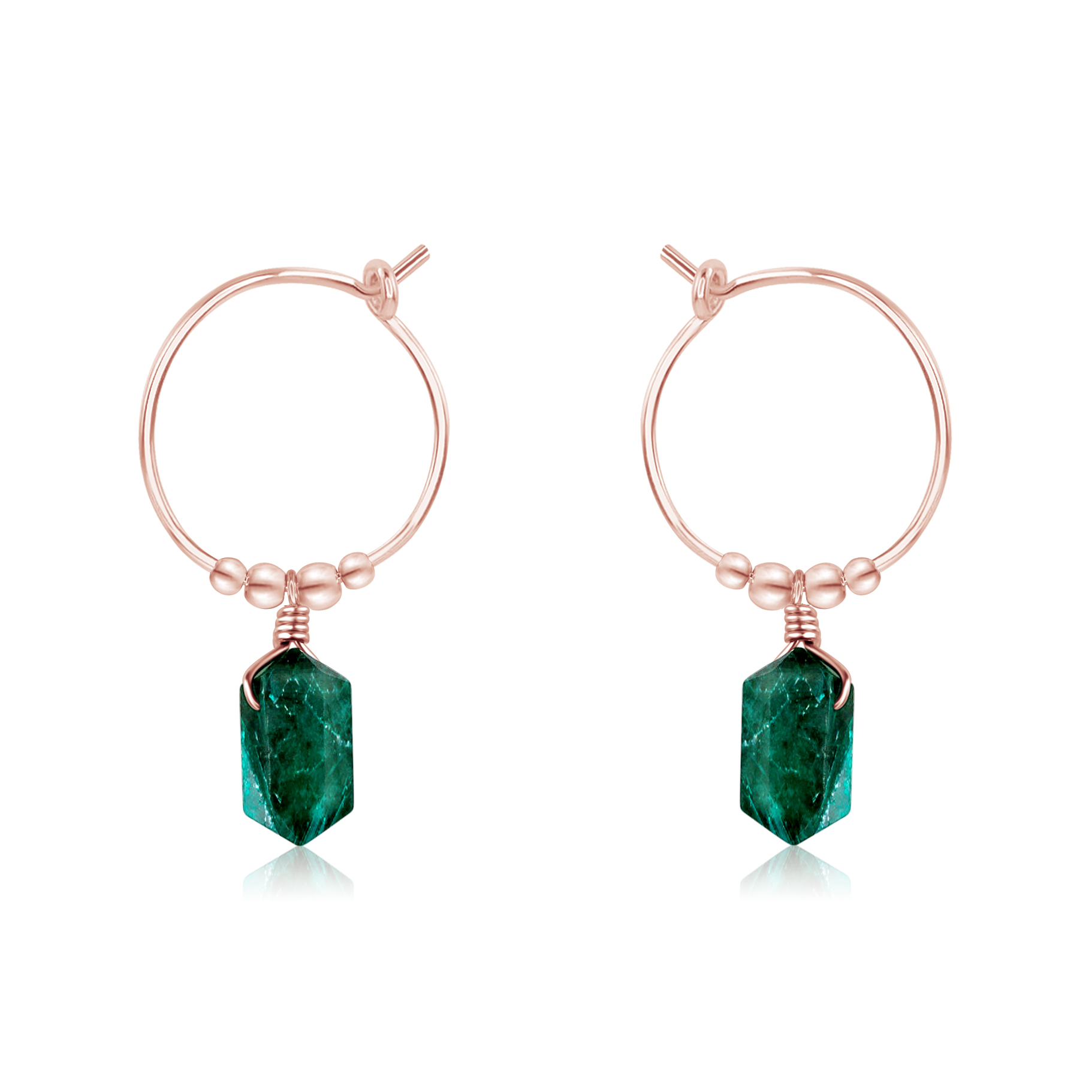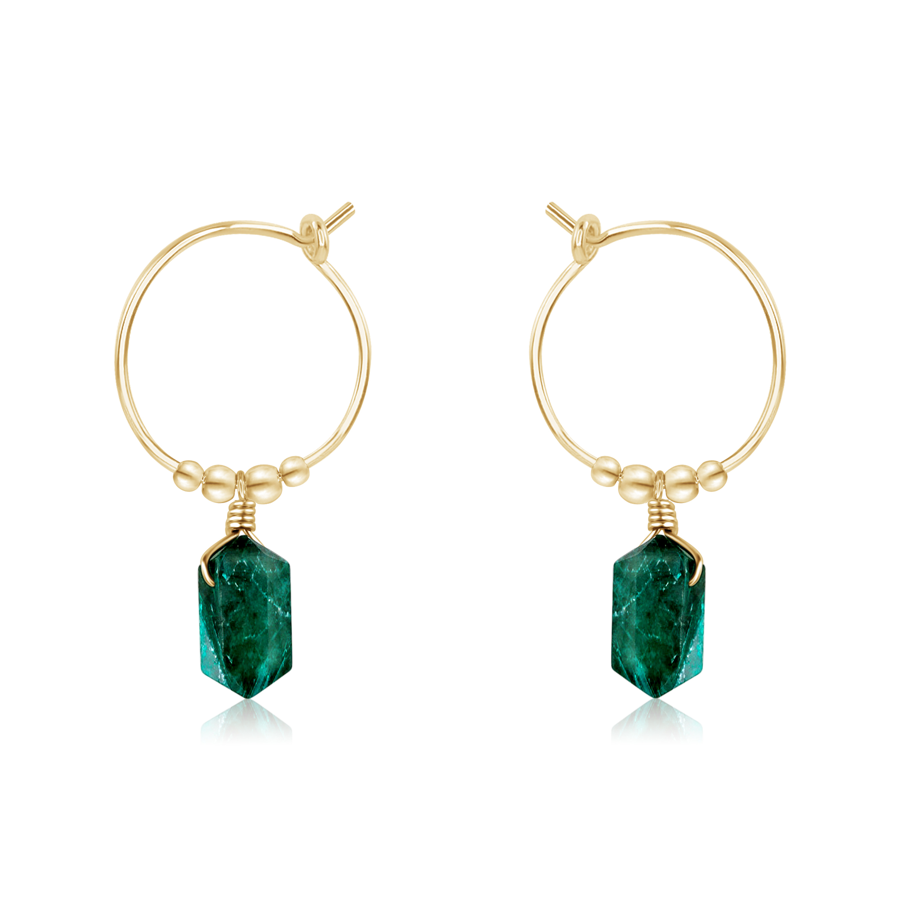 Double Terminated Emerald Mini Crystal Point Dangle Hoop Earrings
