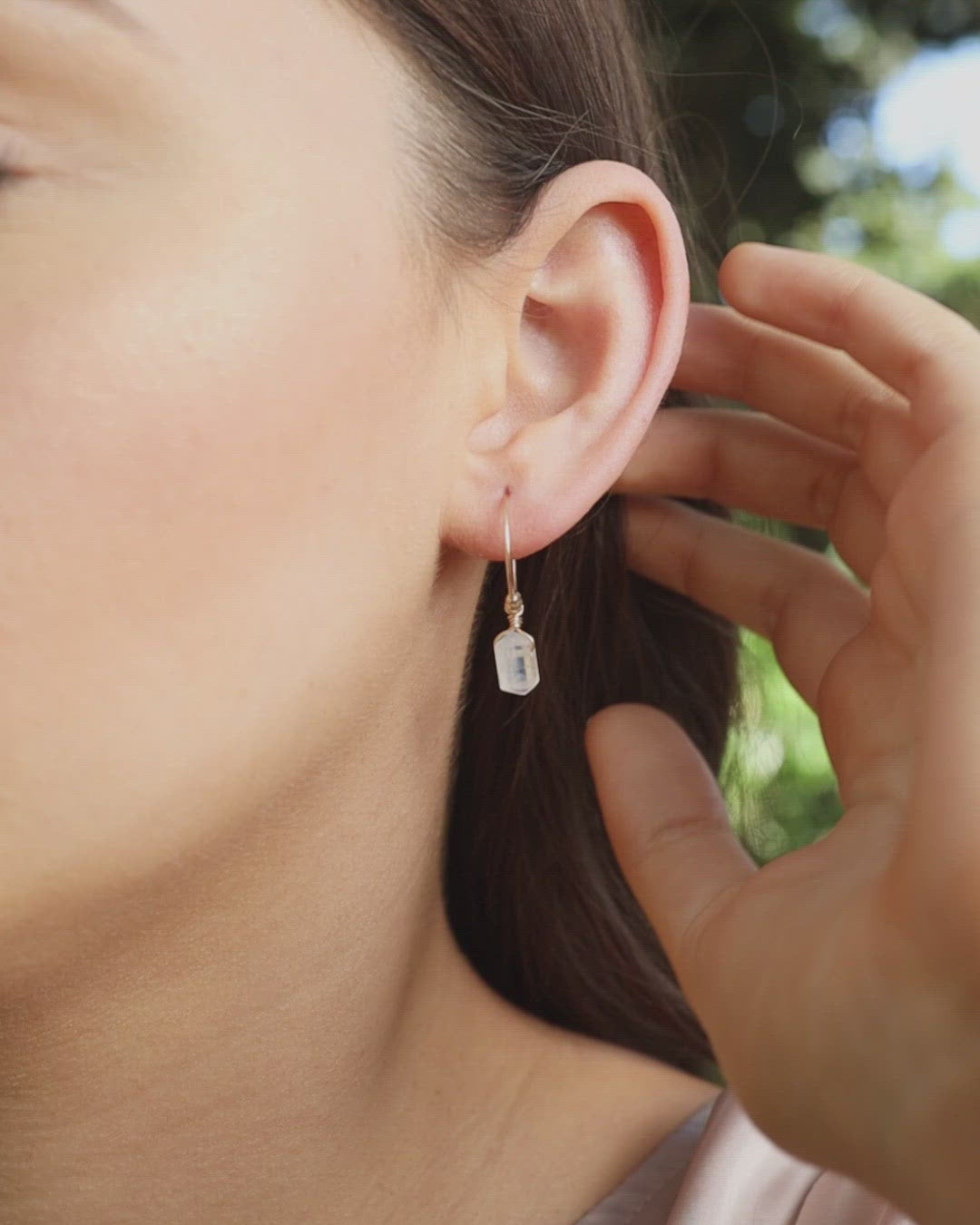 Double Terminated Rainbow Moonstone Mini Crystal Point Dangle Hoop Ear Luna Tide Skip to content