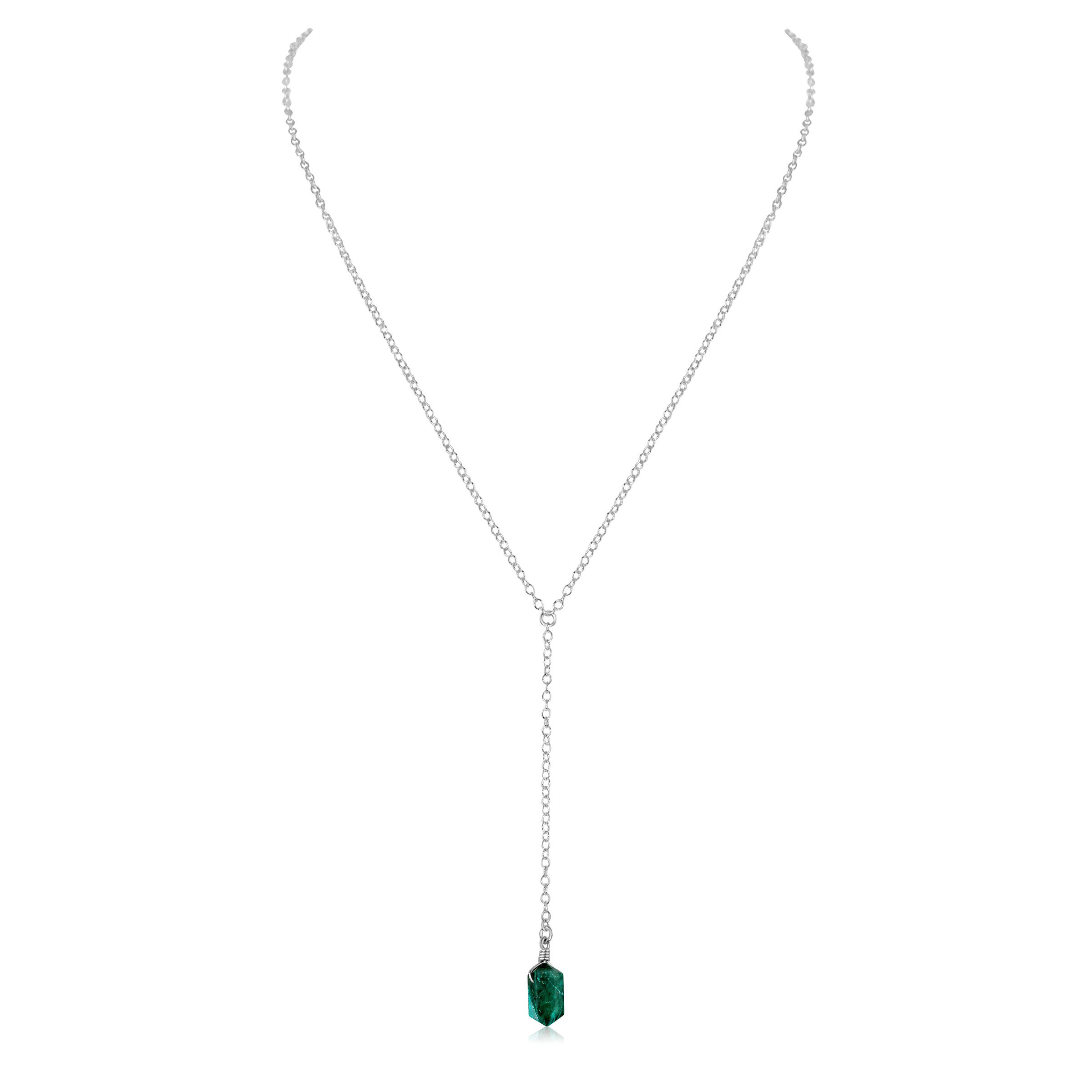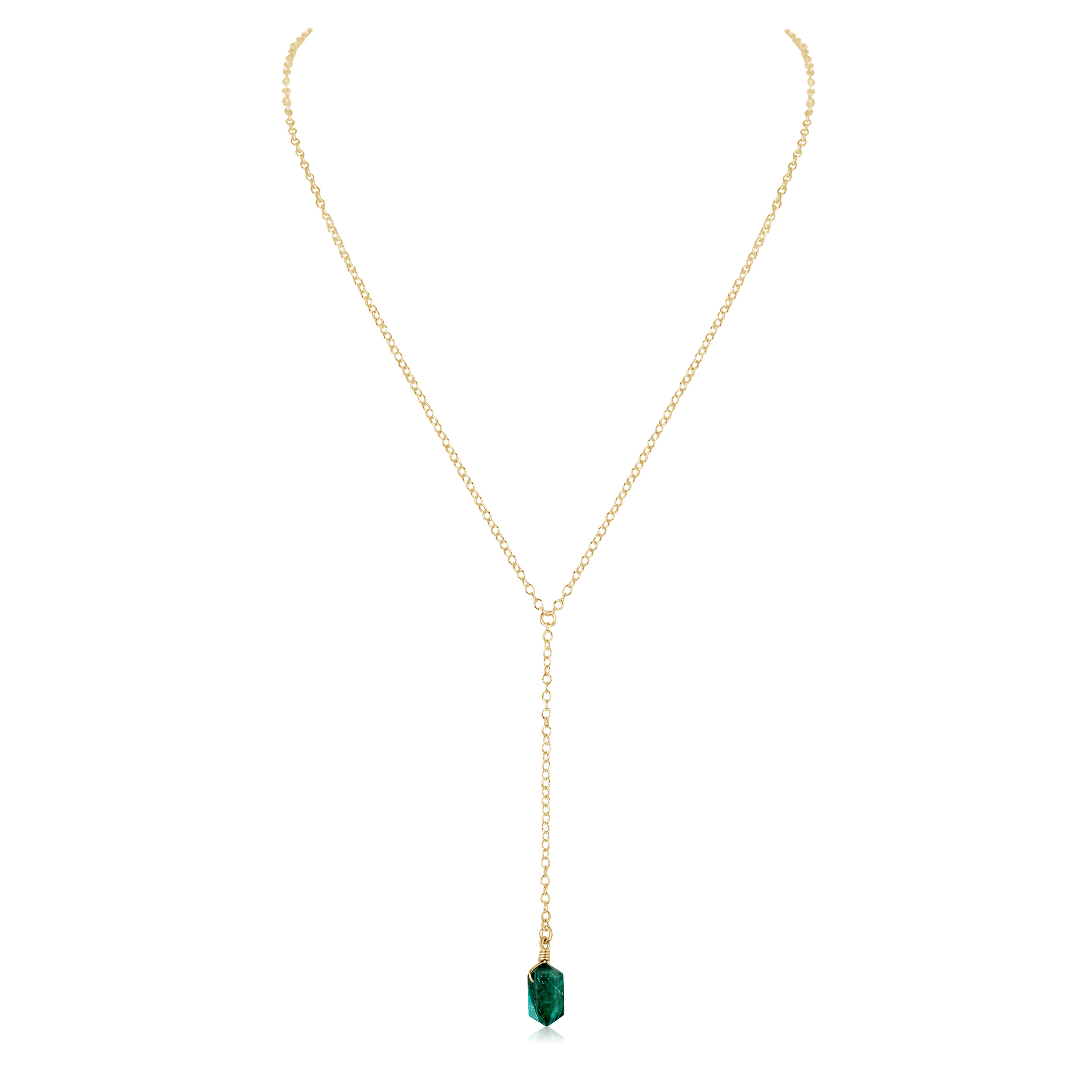 Emerald Double Terminated Mini Crystal Point Lariat Necklace