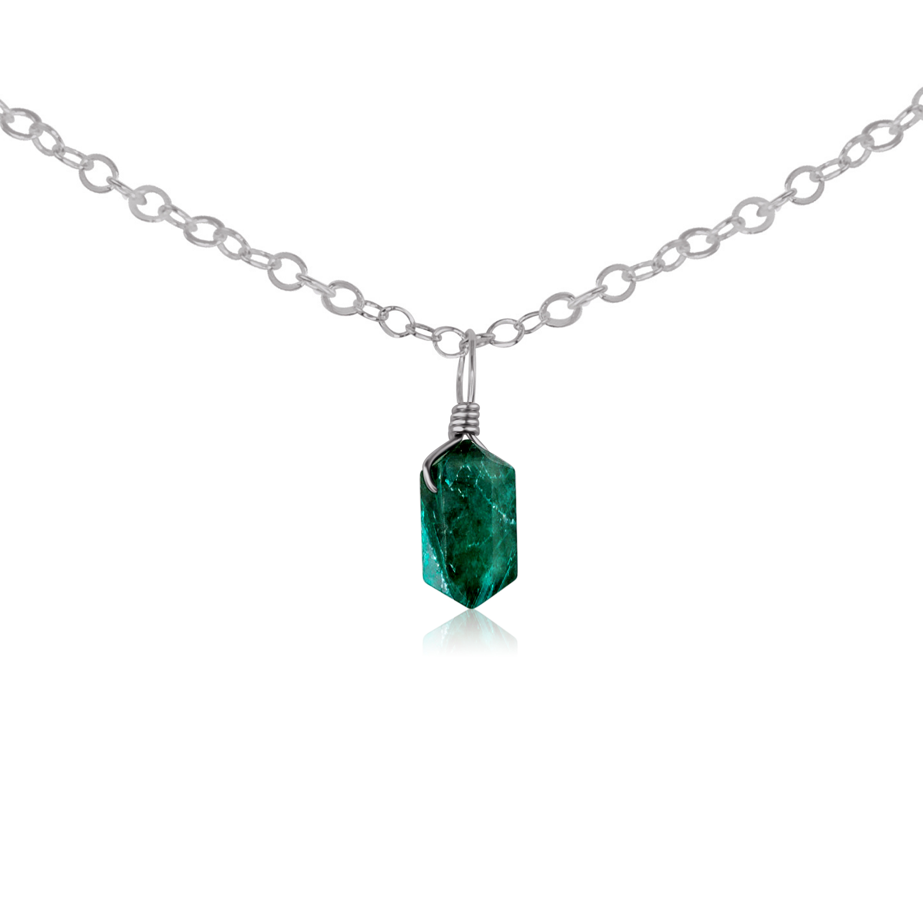 Emerald Mini Double Terminated Crystal Point Pendant Choker Necklace
