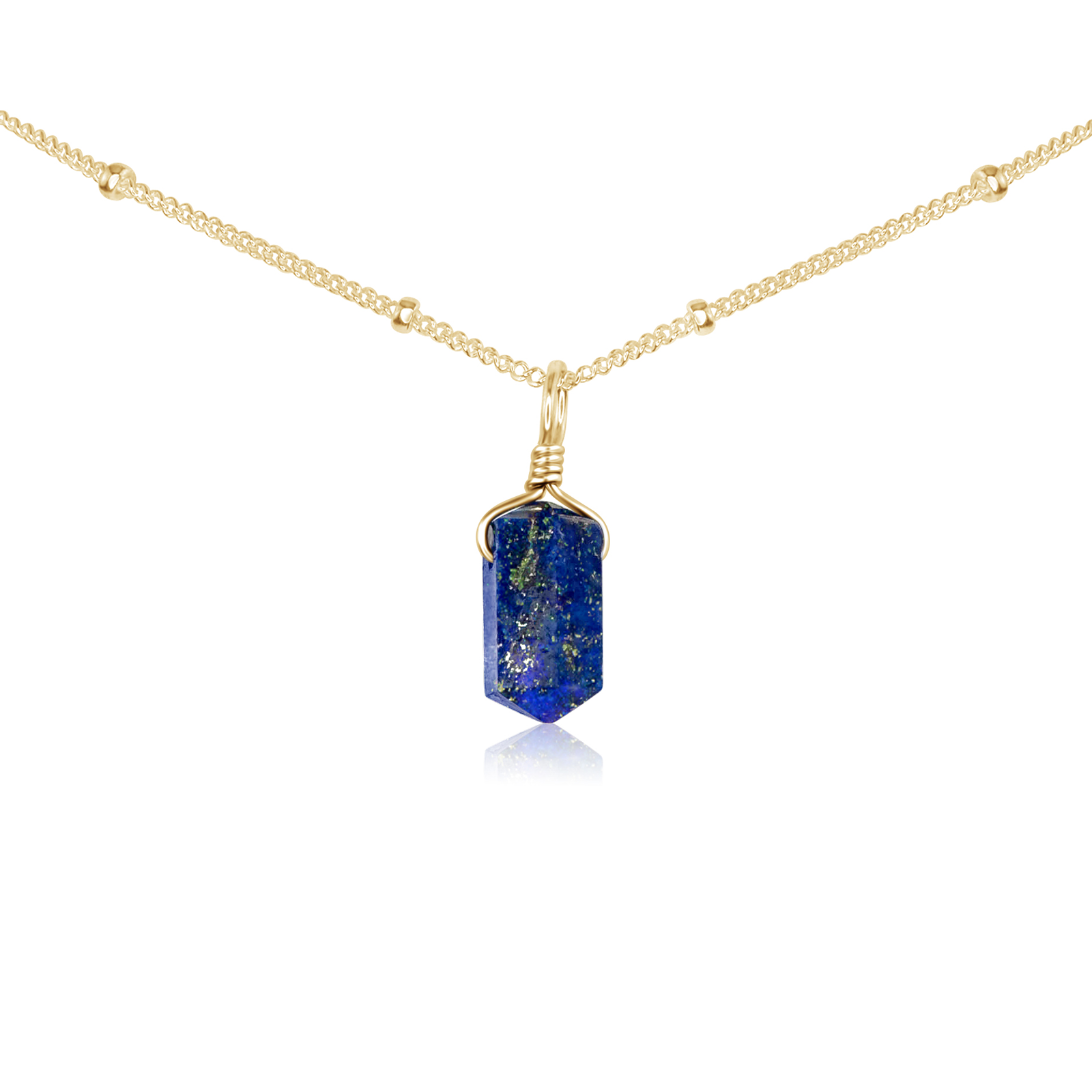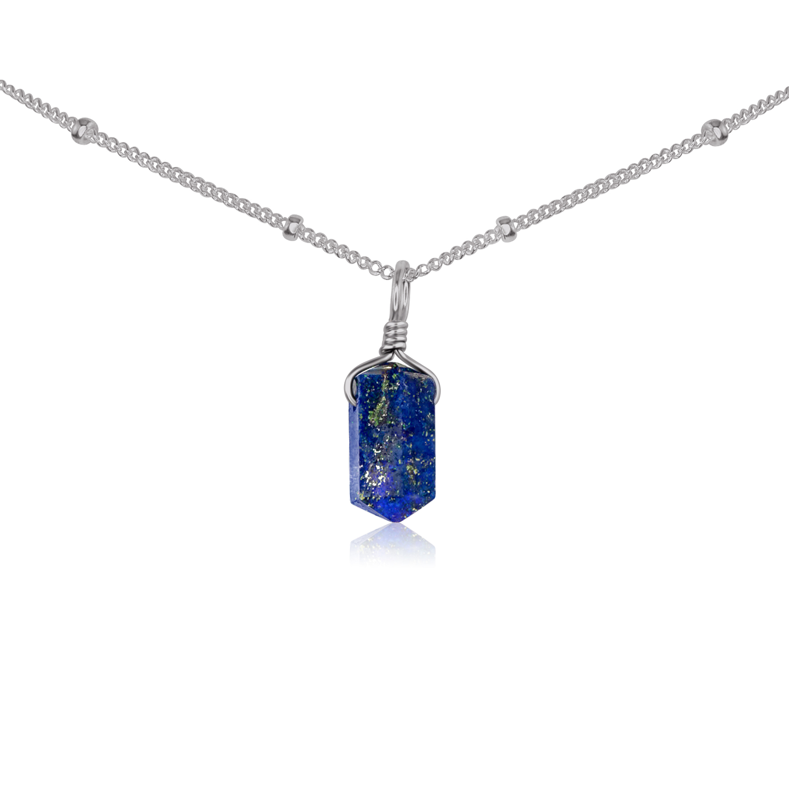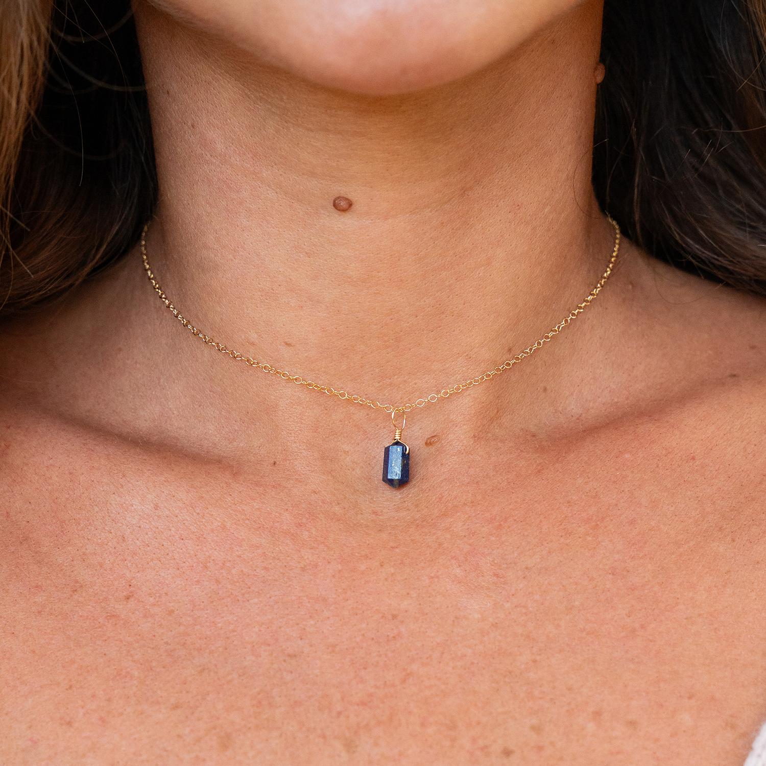 Lapis Lazuli Mini Double Terminated Crystal Point Pendant Choker Necklace