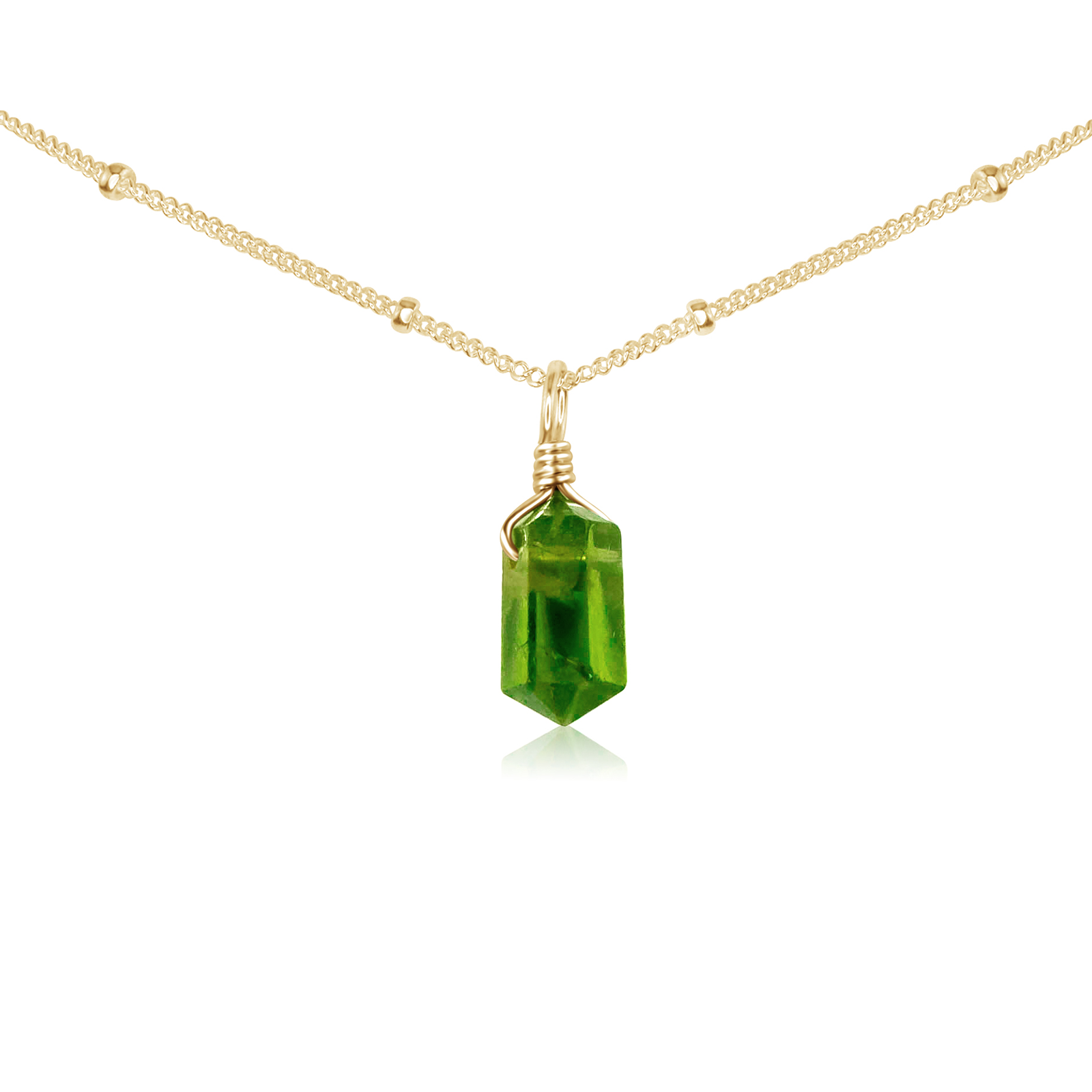 Peridot Mini Double Terminated Crystal Point Pendant Choker Necklace
